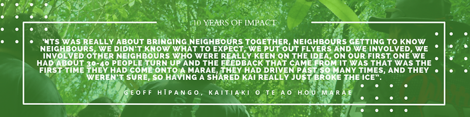 Through the many wānanga, co-design engagement hui, harvest events and community meals, Relationships & Connections between community members and organisations working in the kai space have formed and strengthened. The most thriving example are the monthly community meals hosted by Te Ao Hou marae - one of the critical community hubs in the local kai ecosystem - which grow in popularity every month until the most recent had over 150 of the community in attendance. The increase in neighbourhood trust is generating more local kai initiatives that are coordinated by community collaborations and informed by a more cohesive vision for the future of kai in Whanganui. Gradually the disconnected ecosystem of people working to shift the kai system in Whanganui is becoming increasingly interconnected and collaborative.