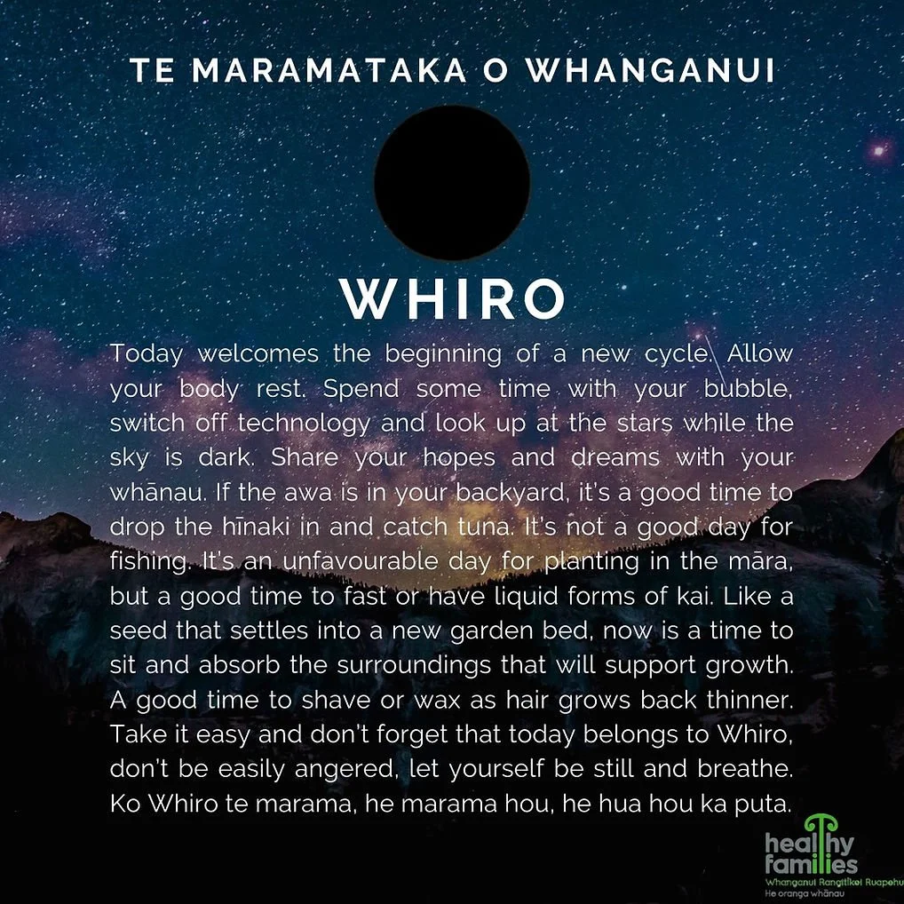 The Healthy Families Whanganui Rangitīkei Ruapehu team have been actively involved in the revitalisation of maramataka, a traditional Māori system and science for determining how and when critical hapū functions and practices would be performed. Maramataka was a guiding framework for managing the health and wellbeing of the community.