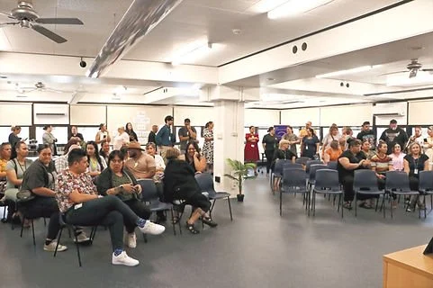 Kaihautū for Te Waipuna Health Jamie Proctor emphasised in her kōrero on the day that: “We’re all in this together, this is a community approach, this isn’t a Te Oranganui kaupapa alone, each and everyone of us that is sitting here today in this room has the opportunity to input into what this looks like. I’m excited to hear what your thoughts are, I’m excited to hear from our hapū māmā, pāpā, our nannies our koroua and our mokopuna around what their experiences are, so we can drive this forward.” (Jamie Proctor, Kaihautū Te Waipuna Health)