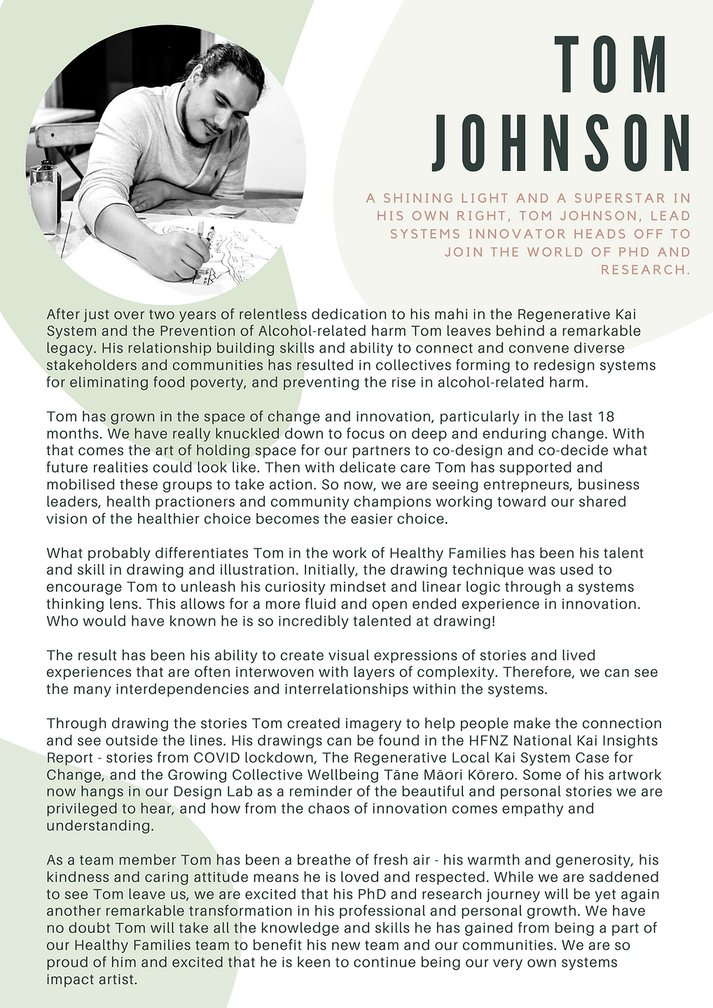 Tom Johnson 10 Jul Written By Stacey Cottrill Heading off to join the academic and research world to pursue his PhD Stacey Cottrill
