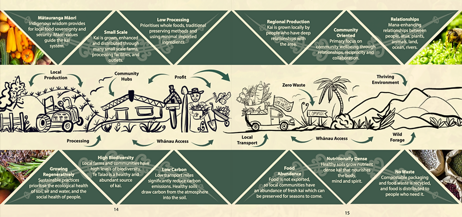 The Regenerative Local Kai System initiative focuses on the community-led redesign of the kai system to achieve a local end-to-end food supply chain, aiming for sustainability, inclusivity and innovation. This initiative marks a shift from the industrial, corporate food system that contributes to Kai Insecurity and Kai Dependency. The transition is toward a holistic and mātauranga Māori informed Regenerative Local Kai System that fosters Kai Security and Kai Sovereignty, generating a preventative system for widespread social, cultural and ecological well-being.